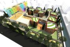 The living units are connected to the communal space through zigzag elevated walkways shaped like verandas clearly inspired from the classical garden of Suzhou, the Master of Nets Garden. The layout should read as a pathway floating in the air spreading out in a forest, providing delicate spatial and visual experience at every corner.