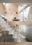 With each space being so small, having no walls proves advantageous – the residents can move quickly from one space to another. This constant activity could be compared to “mutters of Twitter” where short messages are sent out through the internet. Each space is very small, but acts in these small spaces are varied and these small various acts connect with one another. Sometimes the wife stands talking with a customer in the cookie shop on the first level, then drinks a cup of tea at the dining space on the 1.5 level, then moves up to the second level and watches TV, all in little time.