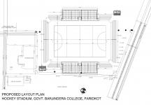 The Hockey Stadium at Barjindra College, Faridkot is one of these newly-built stadiums. The Barjindra College is a renowned institution of the Malwa region of Punjab. The college has a sprawling campus with large open space for playing fields. A part of this space has been utilized for setting up the new Hockey Stadium. The stadium and its supporting infrastructure occupy an area of about 5 acres.