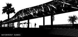 The beach promenade Durres was the beach which allowed a goal very significant and beautiful in terms of view of environmental and landscape quality, a short distance from major cities.That is, until pollution and speculation have ravaged the coast in recent years to reduce that much the importance of tourism and the economy connected. It was therefore decided the development the outline of the city by creating an axis equipped green on the beach and recovering sections of the coastline in order to achieve sufficient depth of the shoreline.It is made of a linear system with an expandable structure of urban park boundary to link the current urban situation jagged creating the backbone of a new skyline of the city and for the city. A project for the urban redevelopment, economic and environmental, which we consider a synonym in the case of the waterfront of Durres, the need to reconstitute the ‘ecology of urban growth and a new waterfront unit. To give unity to the system has been realized an axis which is raised in a path portion of laminated beams prefabricated and assembled dry wrapped perforated walls which form the preformed skin and have the purpose of making climbing plants.
