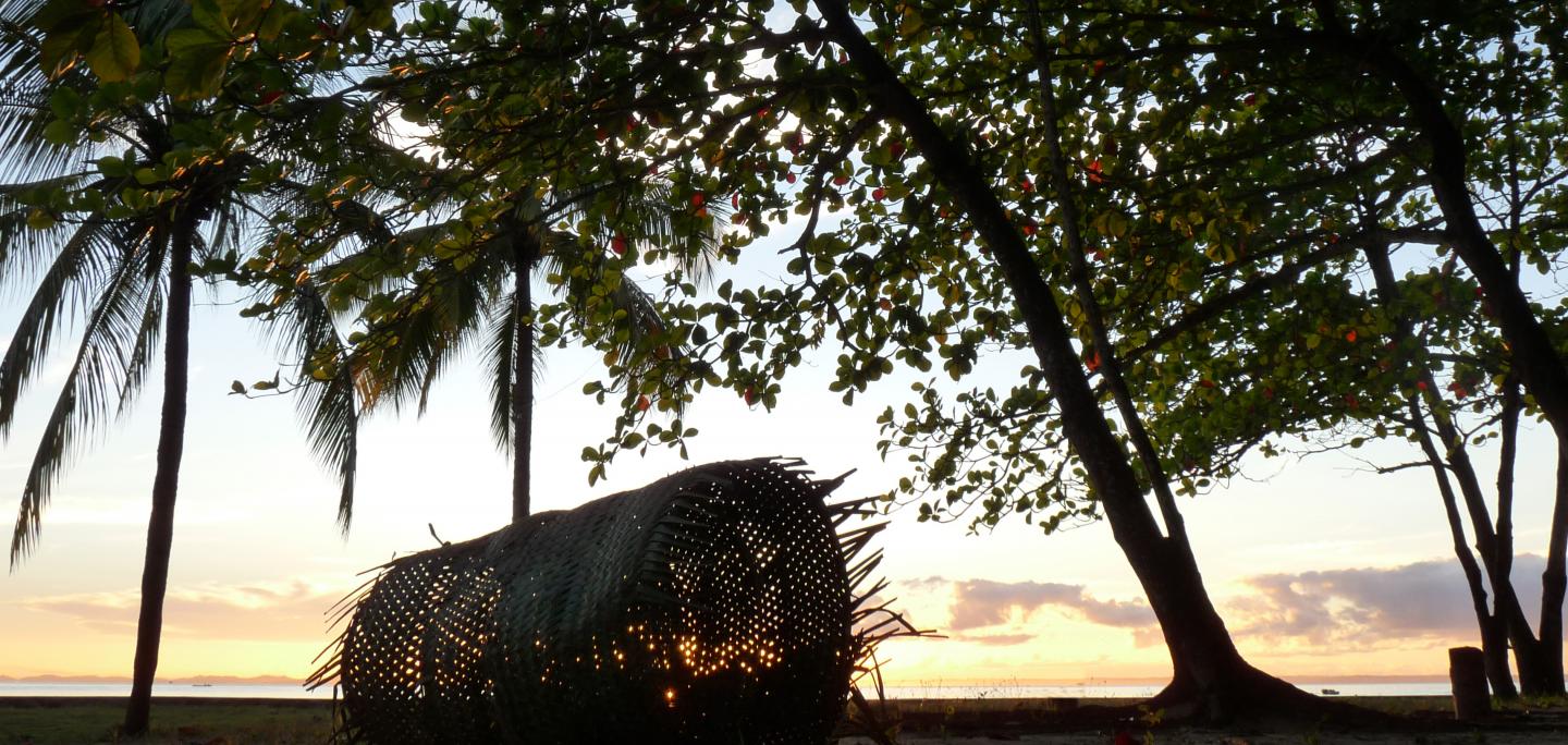 The work Lightweave consists of a dialogue with the natural landscape context of Bahia through a piece created with light that explores a local artisanal textile technique using the coconut palm leaf found in the island as raw material. It forms an interior space for personal reflection which creates a visual dialogue between the interior and exterior landscape that it delimits. From inside, the piece frames and suggests the landscape, creating a natural embroidery of light and shadow. The limits are defined by the vegetable skin that acts as a lattice filter fragmenting light beams and shadows. Throughout the day, its outward appearance varies through different shades and reflections and, at sunset, the light dilutes its apparent strength, allowing it to become a fabric that lights up from the inside and that blends into the landscape itself.