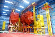 Maize Dryer Centre is constructed in hi-tensile, pre-engineered steel structure with powder coated profiled sheets. 48m x18m x 17m high structure has been designed to house large dryer plant manufactured by Suncue Company of Taiwan. Each plant comprises 4 units with a drying capacity of 16.5 tons per batch. It dries 2.5% to 3% moisture contents per hour. For drying of grains, heat is produced by burning rice husk in a furnace which is attached to units. Using rice husk instead of diesel is more economical, energy saving and environment friendly.