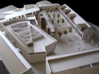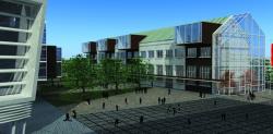 In terms of composition, the complex was formed around the Arts Square“ – a public space arranged by the model of ancient Greek agoras, which were the forerunners of cultural and public gatherings in contemporary European cities. The square disposition was determined by the existing industrial hall volumes. Akin to stoas that surrounded and formed ancient Greek squares, here the former industrial facilities form a new „artistic agora“. Industrial halls were converted into facilities for visual and drama arts, while the newly designed facilities were derived by their specificities and functions within the remaining part of the complex. Project represents the unity of the artistic campus which, beside educational character, attaches a new dimension to promotion of culture and arts on a larger scale.