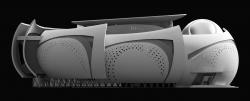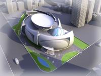 With this concept the inner circulation follows an elliptical pattern, with connecting ramps for each exhibition hall, thus maintaining a smooth public transition from one hall to another.