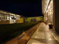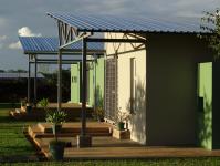 The courtyard is formed by two simple shed-like buildings, a “public” and a “private” wing. The entrance to the courtyard is between the two sheds, with the more inviting, open living spaces to the north, and bedrooms to the south. The public wing opens up to the environment, allowing warmth, sunlight and open spaces for living - while the private wing is cool and shaded with framed views. Each wing has a simple roof, which rises to the north and admits light into the living and bedroom areas. The deep overhang shields the walls from the high summer sun, yet admits it into the house during the winter months. The western patio is ideally positioned to enjoy the sunset, while the stoep on the north is edged by a grassy berm and is relished by the children.