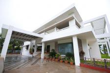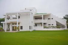 Arising out of the basic structure the wide facade house has emphasized horizontal lines as if its extending its wings to infinity. The building has a long distant vista and a two way drive up to the entrance, opening a canvas of delight. The white textured plains, beams with beige stone cladding at selected focal points and glass, plays interesting extension of poetics of space. The symphony of levels and projection to variable thickness is transformed into a grounded structure like the young clients persona by use of carefully placed vertical slits. These interlay also cast shadow to the south facing building front.