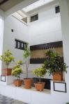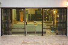 At the entrance is a mural by the architect in granite and wood with overlooking court to the basement gym. The foyer is an extension to the 45 degree in plan beautifully crafted jaali to screen Namaz room by virtue of its flooring and similar ceiling pattern. The squares and circles are composed in various graphical symphonies to glass, wood, and furniture. Light, space and connection to the outdoor are a valued asset in this house whether natural or artificial. Daring use of Travertine marble flooring which otherwise is mainly use to clad is a fine example of clean beautiful space. Architects love for glass and wood both used to luxury by providing different moods to each space. Understanding together what client wants by the architect and his wife Nipa resulted into a pious atmosphere derived from ancient jaali created in wood represented on glass as well using fine fabric and shade of colour is true to the identity, stature, young but religious modern couple. Entire house has a unique blend of common hue used in different materials.
