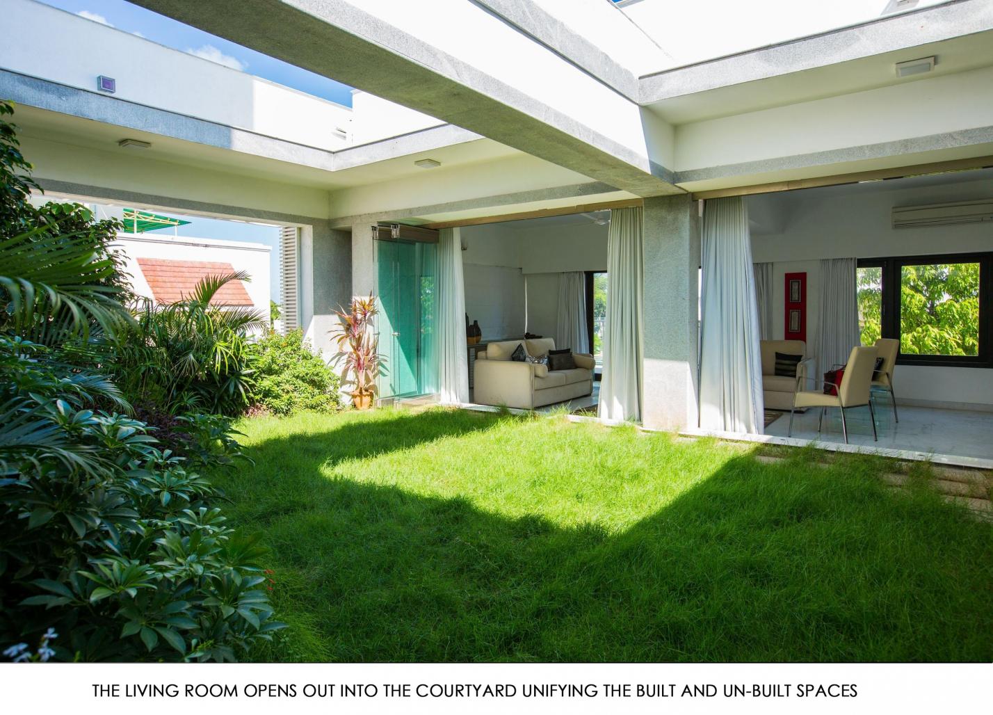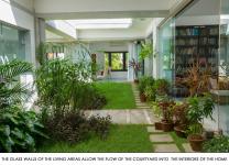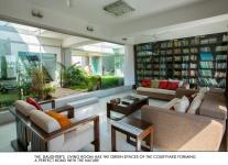 Rooms with a VIEW: Nestled on the bustling TTK road in Chennai, India, is a stately elegant building with rich rough granite facade exteriors, wood and glass combination. The design concept was an urban edifice designed with traditional elements such as courtyard in the third floor and contemporary green design. Each element was designed using natural materials and there is a clear integration of the outdoor space of the courtyard with each indoor architectural space. The clients are firm believers of nature as well as vaastu and the design brief emphasized the need for integrating nature with every part of the living spaces.