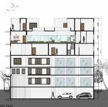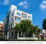 Natural Stone is an integral part of green design and the building is an example of how the ancient traditional materials can be used in any part of the exterior and interior of the built space. Solar energy is used for heating and lighting purposes. Taking the principle of Zen and the stone temple of Karnak in Egypt, each stone member of the exterior elevation is 15 feet height and 4 inch thick monolithic granite blocks. The exterior and interior design is union of the human habitat and nature. The lower floors are rented for a commercial establishment the swanky I-Phone store.