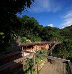Ultra-Ruin is a wooden architectural organism that is growing from the ruins of an abandoned red brick farmhouse in the meeting place of terraced farms and jungle. The weak architecture follows the principles of Open Form and is improvised on the site based on instincts reacting on the presence of jungle, ruin and local knowledge.