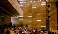 The theatre facilities (store room, workshop and rehearsal space) is located at the back of the theatre. In this part of the building the technical requirements define the space. This is where the various volumes are articulated with the morphology of the place