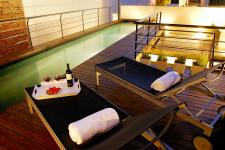 Taken to the extreme, the intention was one of generating an ethereal skin-core into the courtyard of the house, and searching for a structural, tectonic and construction that would lead us to the idea of disappearing the structure and thus achieve a certain voltage determined by weightlessness based on the idea of a floating pool over living spaces. This idea was decisive along with that of the use of a mixed structure, with iron columns to continue the centerline of the woodwork, which is clearly opposed to the concrete volumes of marked visual presence.