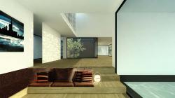 The entrance level embraces mainly the more social living program, creating a strong relation with the swimming pool which cuts its entrance throughout the house volume, inviting the dwellers for a swim.