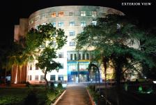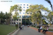 The library is G+6 storied building with a built up area of 90,000 square feet. The first four floors are library, the next two are the class rooms and the last floor is the administration area. The entire façade his treated with stucco and punched windows. This entire building is centrally air-conditioned. The plan being oval in shape you can get excellent views from the inside out towards the campus.