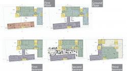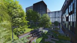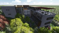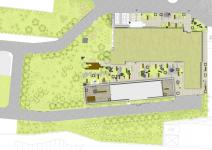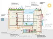 The challenge of designing a library for Hacettepe University Faculty of Health and Sciences right next to the noise of the suburban rail line and on a steep slope was taken as an opportunity to go beyond conventional library design by Ekodenge Architecture. Prime performance considerations were natural ventilation, optimized natural lighting and acoustic cautions. Program demands were for increased study space for a library that doubled as a living space for the hectic schedules of medical students. Thus the building was designed in two blocks, letting a courtyard isolated from noise. The courtyard, with efficient landscaping helped formation of microclimate, providing natural light and fresh air for all study spaces throughout the building. One block hosts the archives and interactive spaces; the other is solely for study areas, making space for a contemporary Library 2.0 perspective. The students shall be able to organize events in the library, use digital media more often, socialize and give feedback to improve their use of resources while the library will provide the spatial comfort of a high quality environment boasting fresh air circulation and an abundance of natural light. Daylight has been controlled via sun-shades for achieving the optimum angle to prevent glaring. Material choices have been based on health criteria, natural contents, low ecological footprints and efficiency in life cycle costs. Passive heat storing and cooling technologies, green roofs and high insulation levels have been utilized for energy performance.