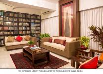 The exterior and interior design is union of the human habitat and nature. The entire building both interiors and exteriors is built of Indian granite and marble as well all furniture and furnishing sourced entirely from India. The interior furnishings and furniture are contemporary in nature, almost ascetic in style. The design is both low maintenance, cost effective and energy efficient. All the paintings in the living rooms and bedroom are the work of the building architect Ms Ponni Concessao.
