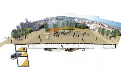 Recovering and highlighting the importance of the citys heritage meant working on different time scales, with the processes of appropriation and the construction of a new patrimony for the future. We proposed building a new square, luminous and full of life, floating above the excavated substratum. This layer would house a huge public area. This layered construction would contain spaces for specific uses and other more generic spaces awaiting a panorama of possible future uses.