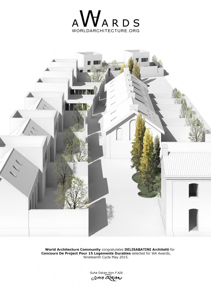 CONCOURS DE PROJET POUR 15 LOGEMENTS DURABLES by DELISABATINI architetti DELISABATINI architetti in Belgium won the WA Award Cycle 19. Please find below the WA Award poster for this project.