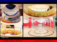 The entry to the mall is made a statement by the 2-storied lobby/atrium space culminating at the circular grand staircase enclosing a lift and looking onto the water-body.