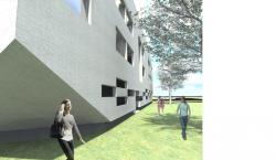 One Object in the park: a compact building surrounded by open space, a piece with a certain discreet and elegant SINGULARITY.