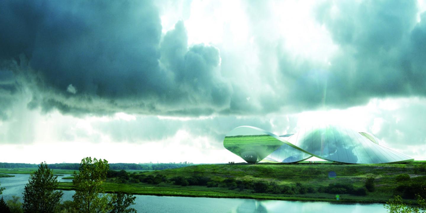The aim of the “Solar Loop” is to expose more surface as possible to the southern solar rays. The shape comes directly from the solar diagrams, and deals easily with the sun following it with the best angle almost like a frozen artificial sunflower. The aesthetic of the sculpture is the result of this dialogue that becomes synthesis between the solar power and Freshkills park. This landmark will organize the park life inside and outside. Potentially it could be thought as a no-dimension element that could be multiplied in different sizes on the park’s needs, to yield energy and living spaces. Thinking in small it could be a shelter, thinking in big could be an arena to organize medium/big events inside such as concerts, sport events, speeches ; ready to be the new reference point for the park’s visitors. The “Solar Loop” is composed by two different surfaces that twist one into the other. The first one is the photovoltaic surface always exposed to the sun with the more performative angle, the second is the mirrored surface that reflects all the surrounding to multiply the spectacularity of the landscape as a single either multiple landmark. The Freshkills’ East area is the most sunny part of the park all the year long, and the easiest accessed park visually connected with the Manhattan Skyline.