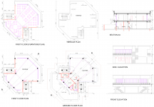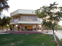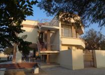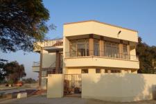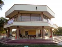 The ground floor has been largely kept open from the sides except for the kitchen and the pantry. The informal dining space at the ground being porous in character affords panoramic view of the entire campus. At the upper level there is a commodious indoor hall for sitting and dining. It has been provided with large bay windows on all sides to capture panoramic view of the campus. Two dog-legged staircases at the opposite corners link both the floors vertically. These staircases also provide access to the terrace which is an ideal place for sit-outs during fair weather.