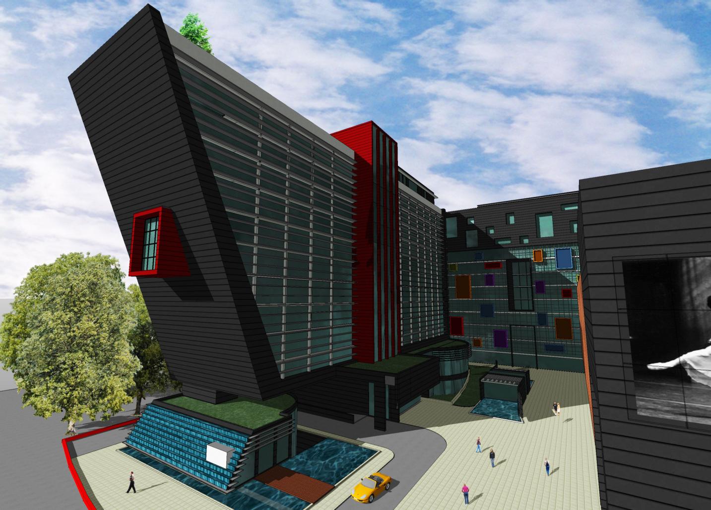 Cultural Complex situated in south Luanda, involving an apart-hotel, a casino and amphitheatre with 2500 seats and a versatile stage capable of responding to requests as diverse as a performance of Opera, Ballet, Theater or Concerts of Classic and Popular Music, or to a sporting event; commercial, housing and office areas designed around a plaza integrated into the Talatona’s Development Plan, with a view to a functional optimization but also of qualification and esthetic valorization of the urban context in which it belongs. The guidelines of the several buildings were aimed mainly to promote better management of functional synergies with the correct co-habitation between buildings with different rhythms and functions. Rectangular bodies in glass, metal and stone with a language linked to neoplastic speech and that appears as a reminiscence of the foundational concepts of square. The square open over the World that in a gestalt way brings us to the Greek Agora redefined here with water plans. Rises an intervention of exception, simultaneously ecological by the use of passive energy and contemporary materials, revealing their own capacity to create an innovative aesthetic and technological context but simultaneously scholarly and of reference.