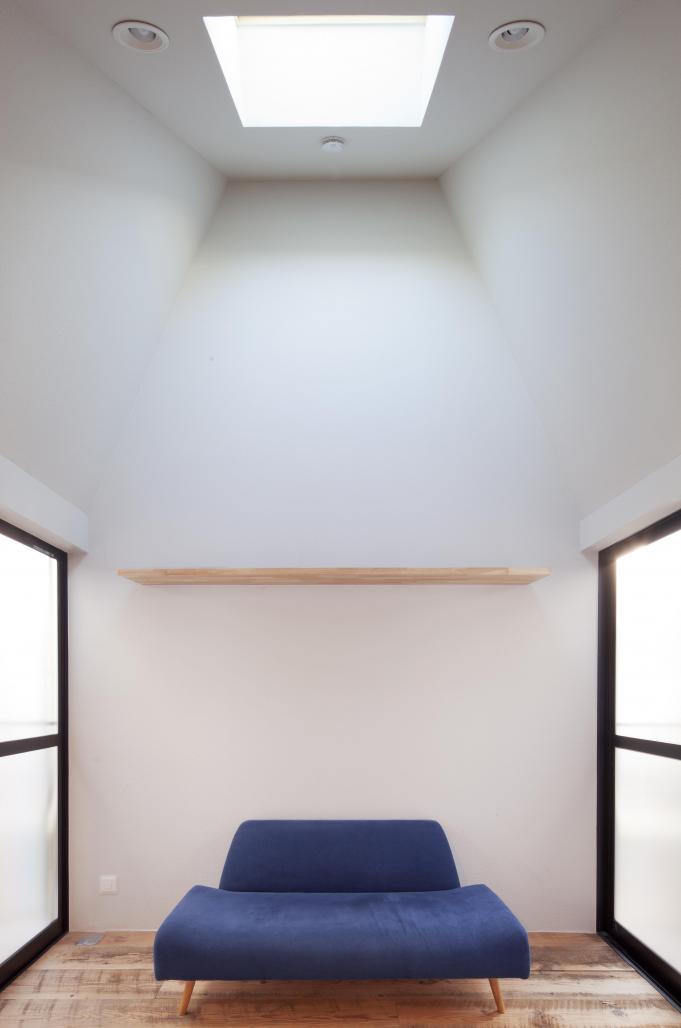Since Tokyo is a densely build-up area, windows of houses that are placed somewhere beside the road side are usually kept close and don’t function as windows. Therefore, this time I had designed slits in the building in order to create openings that are usable at all time. In addition, on the glass of openings, I placed a special kind of sheet that is transparent when you look at it squarely, but is opaque when seeing from an angle. By doing so, we can prevent ourselves from being peeped from outside at the same connecting the spaces from inside.