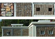 Each Gabion is tied vertically to the adjacent boxes with steel binding wire. The wire is intended to rust, thereby accentuating the verticality of the building and marking the passage of the seasons through a natural process of weathering.