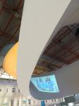 Knauf’s product line consists of over 1200 products and over 150 ‘systems’ comprising of these products. With their re-structuring in mind, Knauf separated these products into 7 different expertise categories. Designing a method with which to display the products and systems, Yazgan Design focused on the idea of a 360 degree un-obscured view of the entire interior. The space was divided hierarchically, with the multi-functional “event plaza” at the central core. Encircling this activity center was the circular arena-like steps that created a seating/standing platform. Beyond this were there seven color-coded display stages topped with floating cone-like structures exhibiting the 7 systems and related products. Strewn between these stages were the 1200 products creating a sort of “product field,” further connecting the visitor to the brand. Encircling this was the 255 meter long “product wall” separating the main stage from the 24 performance and demonstration rooms.