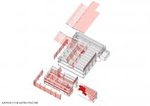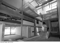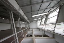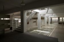The structure was modified to create two distinct zones that accommodated the administrative functions and studio spaces separated by a 3 storey high lobby space. An additional floor was added within the volume of the administrative area, while the studio space remained 2 floors high. An additional floor was added on the terrace with a light roof and a skylight running along the longer axis.