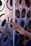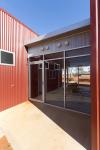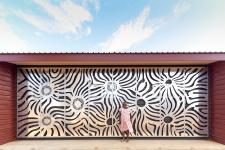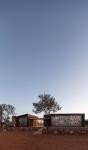 The building is constructed of lightweight steel frame and colorbond zincalume cladding. The two smallest blocks of the building were prefabricated 1000km away in Alice Springs. The art screens are laser cut from 3mm galvanised steel and the stone walls were built from locally collected stone.
