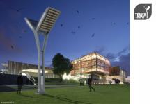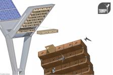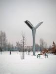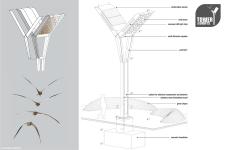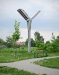 The structure which shape refers to the silhouette of the flying swift is 8 meters high, durable and resistant to vandalism. Ninety nesting boxes have been placed in cascading racks for easy access and the possibility of replacement by sliding out the “drawer”. Shape of the tower protects nests from overheating and rain. The tower is equipped with an information board and solar photovoltaic panels which are used to power swift attraction device and four LED strip lights. Illuminated tower at dusk in a public park is an attractive solution, promoting swift protection even during their absence in winter months and acting as a year-round sculpture for all to enjoy.