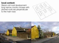 In the village of Sleza in Lower Silesia (Poland) there is kind of historic development with long narrow houses with pitched roofs set perpendicular to the main road.
