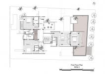 A continuous water pool fronting the living areas - makes a setting of an island / tropical view complete with the existing coconut trees. The living room pavilion opens up as an extended deck to the pool strip. All boundaries disappear as the landscape berms up and down to conceal, reveal and negotiate. The narrative revolves around the naturally lit heart of the house (a domesticated private courtyard) , the nature overlooking living / private spaces, a pavilion like dining space (with a perforated ceiling) in a plan that is in the form of a T.