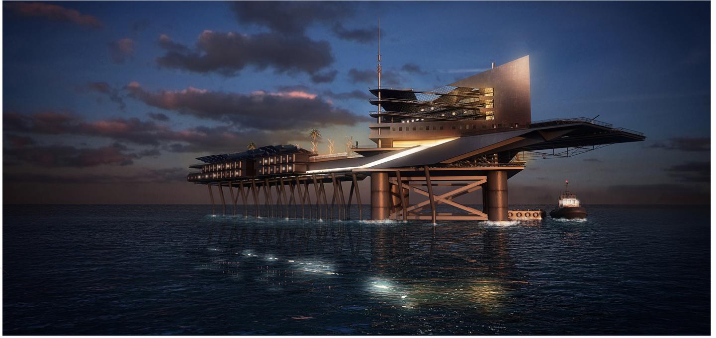 The position where it is supposed to be made construction is 20km from the western coast of New Zeland because of the high level of the tides of which we could make use of Tidal Energy. In the upper deck of the band we can use wind and solar energy. The combination of these Eco-technologies fulfills the energetic needs of the structure.