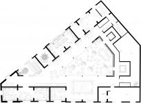 Restaurant and bar services are located at the ground level to make the best use for the pedestrian flow in the street. On the first and second floors, the hotel rooms have a balcony in the original spaces of the building.