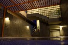 The privacy concern and the tight program was apparently a design constraint for resolving in a modernist minimalist language. To achieve this degree of flexibility is kept by the design of fluid spaces. The program is full but the spaces do not feel congested. The basement is totally isolated from the rest of the house and is reserved for the male members of the family and their friends.