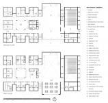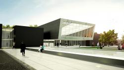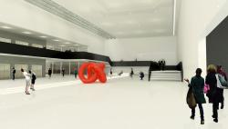 The building wraps you inside; its shape turns into the shape of the different art expressions guided by light lines into a glass ceiling patio café gathering central area. The small art creation and exhibition spaces are arranged like “cubes” around a glass core, providing very short connections between the different areas. Most rooms and the circulation areas have controlled daylight from the sides and/or above. Through this open and fluid arrangement the NCC and exhibition spaces on both levels establish a kind of urban structure with “squares” and “street spaces”.