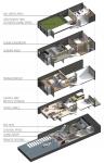 The master plan requests a 30%-50% void in each of the individual houses. The architects were challenged to develop a space organization in which a small patio should serve both for the daylight penetration and as personal outdoor space. This concept creates a series of new building typologies that suit the high density and the back-to-back structuring of the houses.