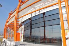 “powerful image of a sports hall in the urban landscape...”