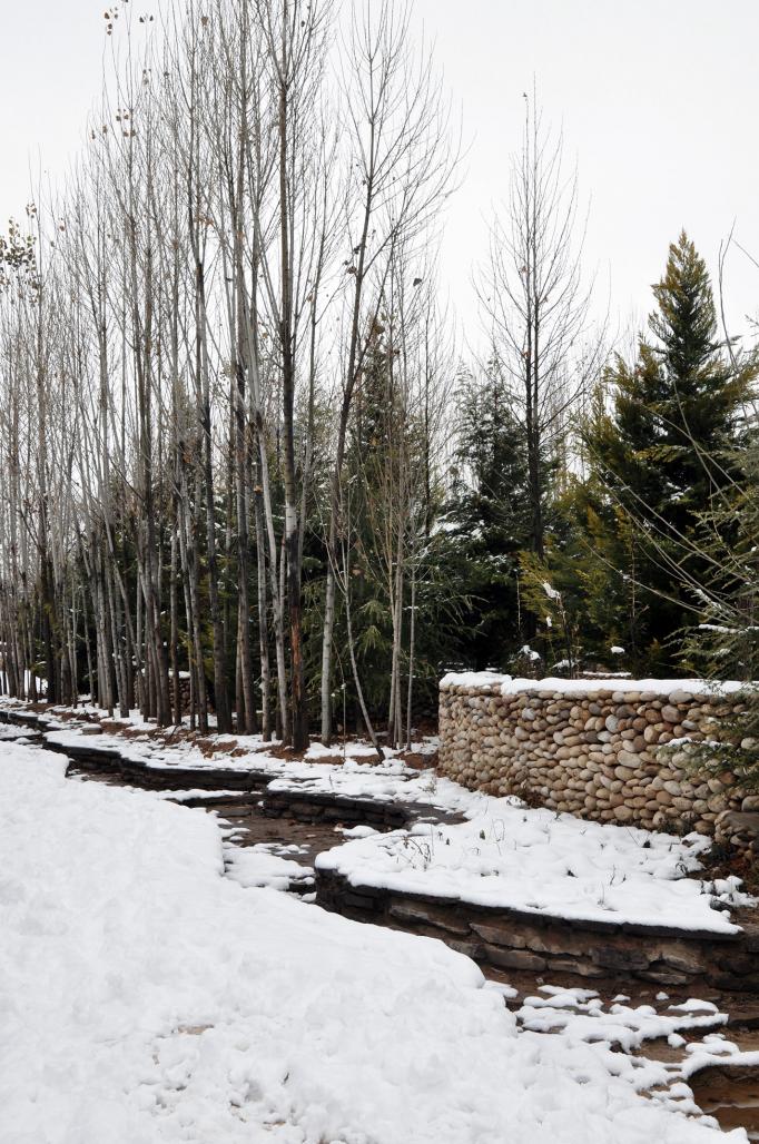 The garden is designed in a rustic discipline. This is not an architectural Manifestation but is simply a place for people to walk and for seasons to be dominant. The rustic stone walls are designed in the memory of old garden walls in this area that are destroyed now by the highways and new buildings.