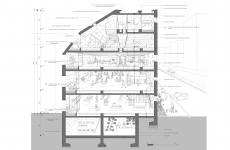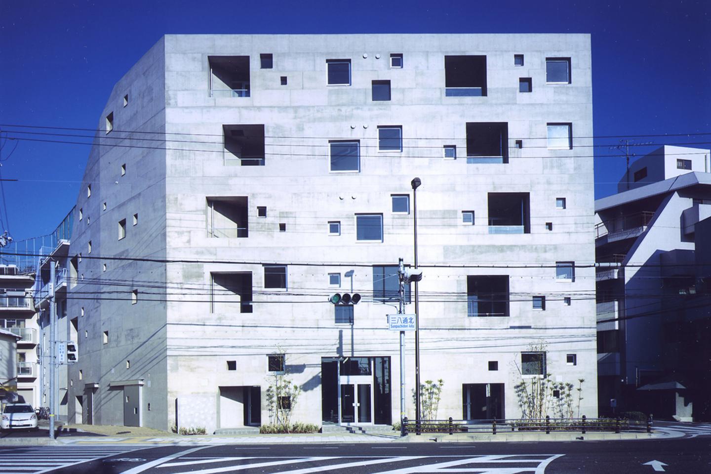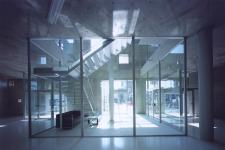 We thought that the wall consist the outline of this volume by national road is important protection from noise of environment, additionally the wall works for earthquake-resistant construction with maximum width of 640mm of thick. Basically, there is no wall in interior of grotto to keep flexible space by only 4 columns to support weight from vertical direction then, each wall between tenant space is built up by method of construction at dry process. The float floor construction method by a reverse beam is adopted so that equipment apparatus, such as a position of a place equipped with a water supply, can be changed easily.On the surface of grotto, there are many various kinds of hole which make connection between inside and outside. User can send and receive natural phenomenon like light, wind and many information at everyday life at the open space around holes. Inside of some big size holes which are provided by the reason of law in size of 2mx2m are introduced to tenant space as a balcony.