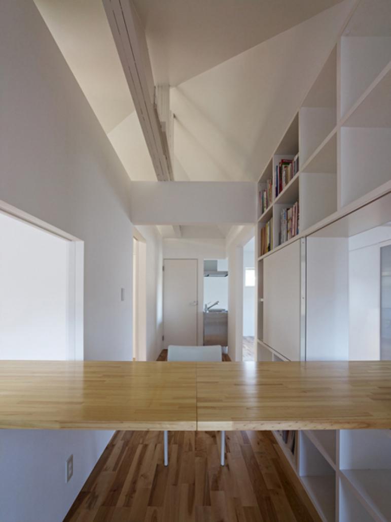 togetherness caused by long desk and kitchen counter crossed the border of each room. And,