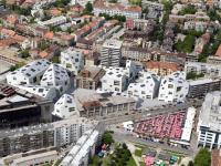 The buildings are molded, to give the illusion of a smaller scale and to let the daylight into the streets. The buildings have been sliced at ground level to create sight lines and to smoothen sharp corners where it is motivated to emphasize a better flow. The total building area is 65.000 m².