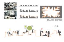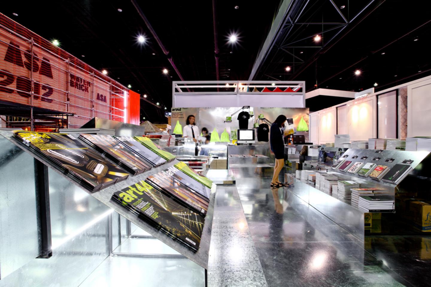 Rebirth…Rooftop Community is inspired from an open space on the row house‘s rooftop which is transformed into a relaxing and usable area for people, also cityscape in recent times. We defined art4d acts as a vast rooftop platform, whose open spaces allow for other roofs, large and small, to grow and flourish. Designers act as multiple roof layers which are growing up more and more in everyday. With three main unit types are adapted by roof proportion, adjusted to be suitable book stalls for human scale and user programs. All of stall modules spread out to 54sq.m area and folded zinc sheet is considered to be the main material used in every unit, including floor and backdrop finishing.
