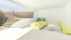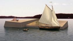 Floating cottages for calm bays in the Åland Islands. Inspired by icebergs, the cottage semi submerges in the water. All rooms are directed towards the atrium that contains a spiraling staircase from the living room up to the sundeck. The living space is 60 m².