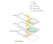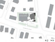First price in an open international architecture competition. Extension to an Islamic center in Quincy, Massachusetts USA. It incorporates a new prayer space with supporting facilities. The new volume floats above an existing parking lot with a balcony connecting to existing building. The facades are closed to enhance the spiritual sensation and use lanterns to utilize sunlight.