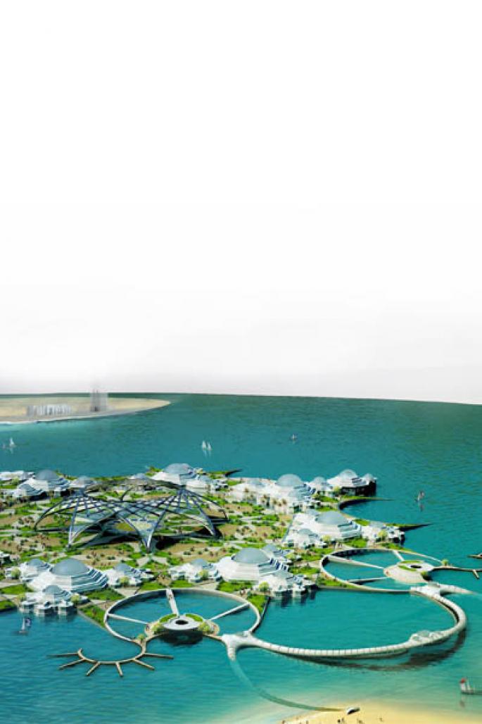 Nevertheless, Sharjah aspires to develop its own identity and it is investing massively in public infrastructure. Sharjah’s lagoons are the most prominent man-made landscape feature of the city. With the objective of increasing the waterfront area, the project aims to bring “water to the desert”. At the center of one of the lakes there lies an artificial island, which is currently perhaps the most attractive potential location for urban public development and an icon for Sharjah.