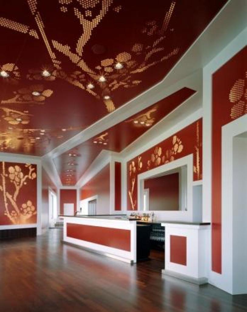 a partition, while the dark-blue lacquered “screen” defines the exclusiveness of the outside space for club members.
